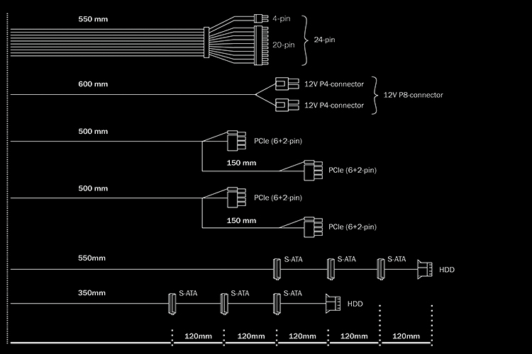 System Power 9 700W comes with full high-quality black sleeved cables that add a touch of class to any PC system.