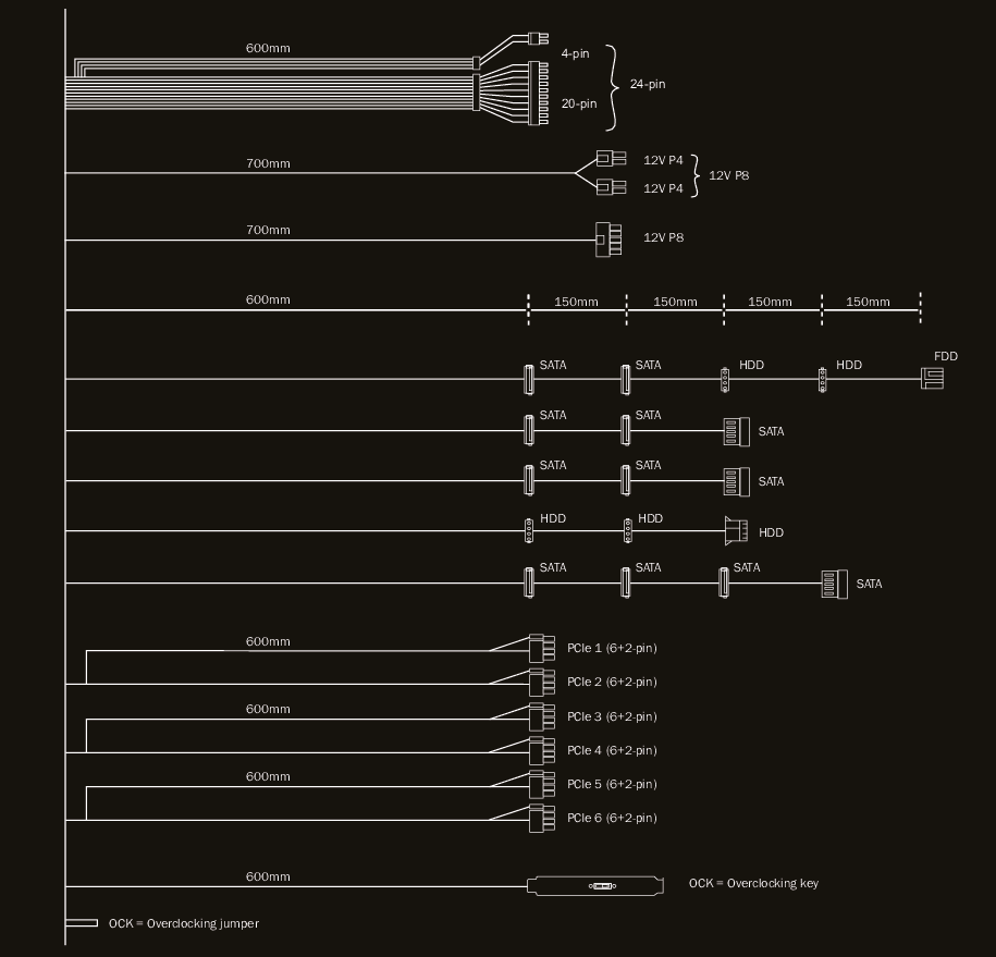 Dark Power 12 850W is particularly suitable for overclocking, thanks to its strong and stable 12V rails. The overclocking key gives you full overclocking control by manually switching between the default four 12V rail mode and the alternative massive single-rail operation.