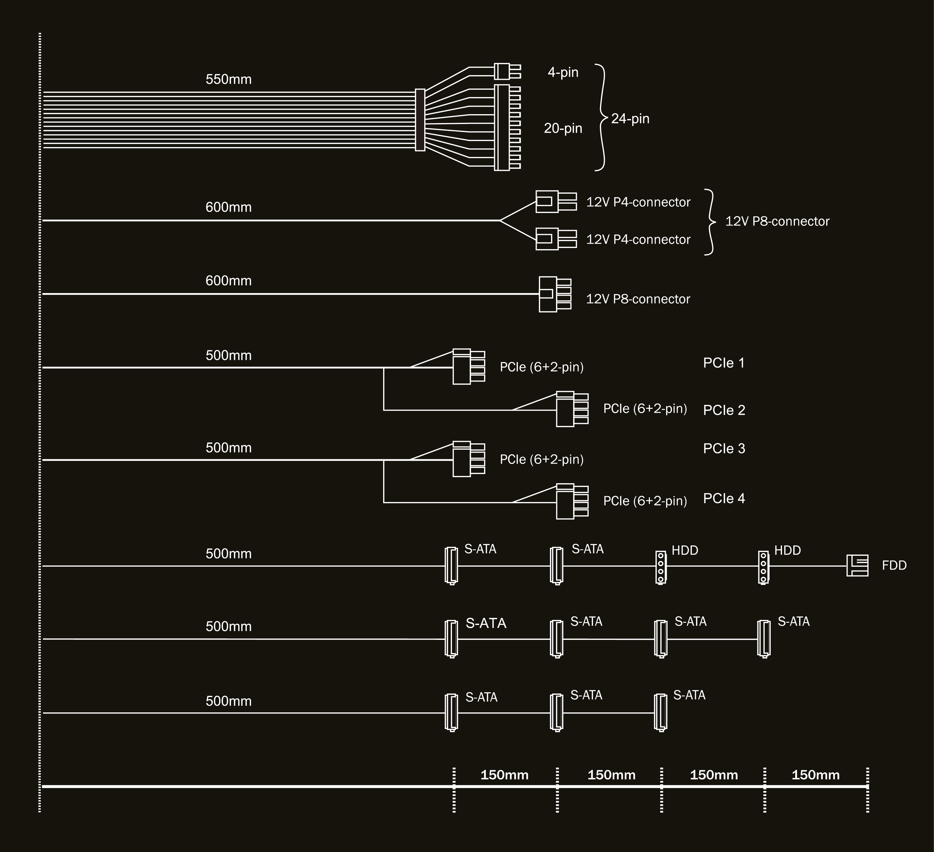 | Flat cables | P8 / PCIe / drives |
